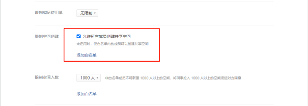 前面语鹦企服介绍了管理员如何创建共享空间,那么如果其他员工也有文件共享需求,该如何让个别员工拥有创建共享空间的权限呢?管理员可以在企业微信管理后台—应用管理—微盘—限制空间创建—开启允许所有成员创建共享空间,或者将个别员工添加为白名单。