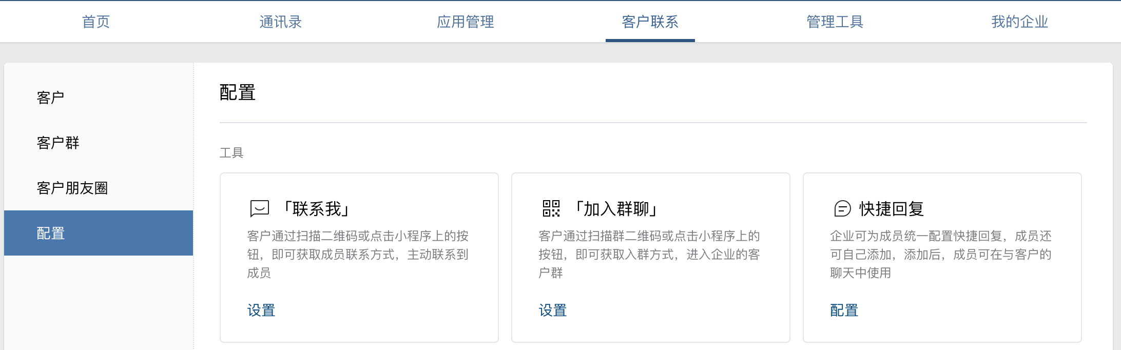 首先打开企业微信管理后台-客户联系-配置-企业标签