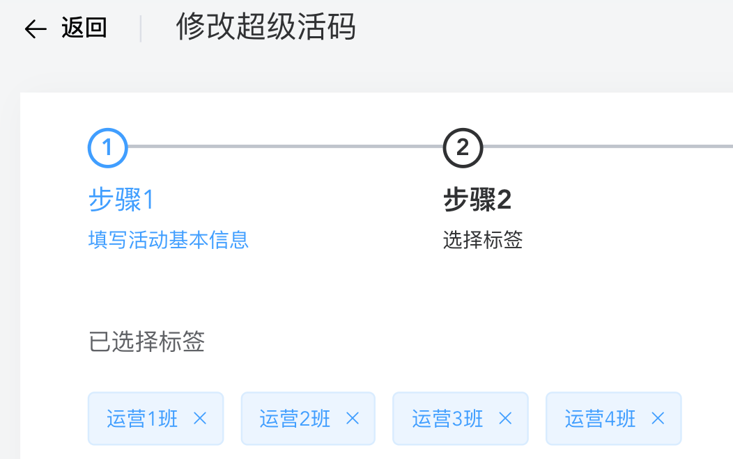 配置好之后,我们打开语鹦企服私域管家管理后台(admin.wecrm.net),在创建超级活码时,选择之前配置的班级标签