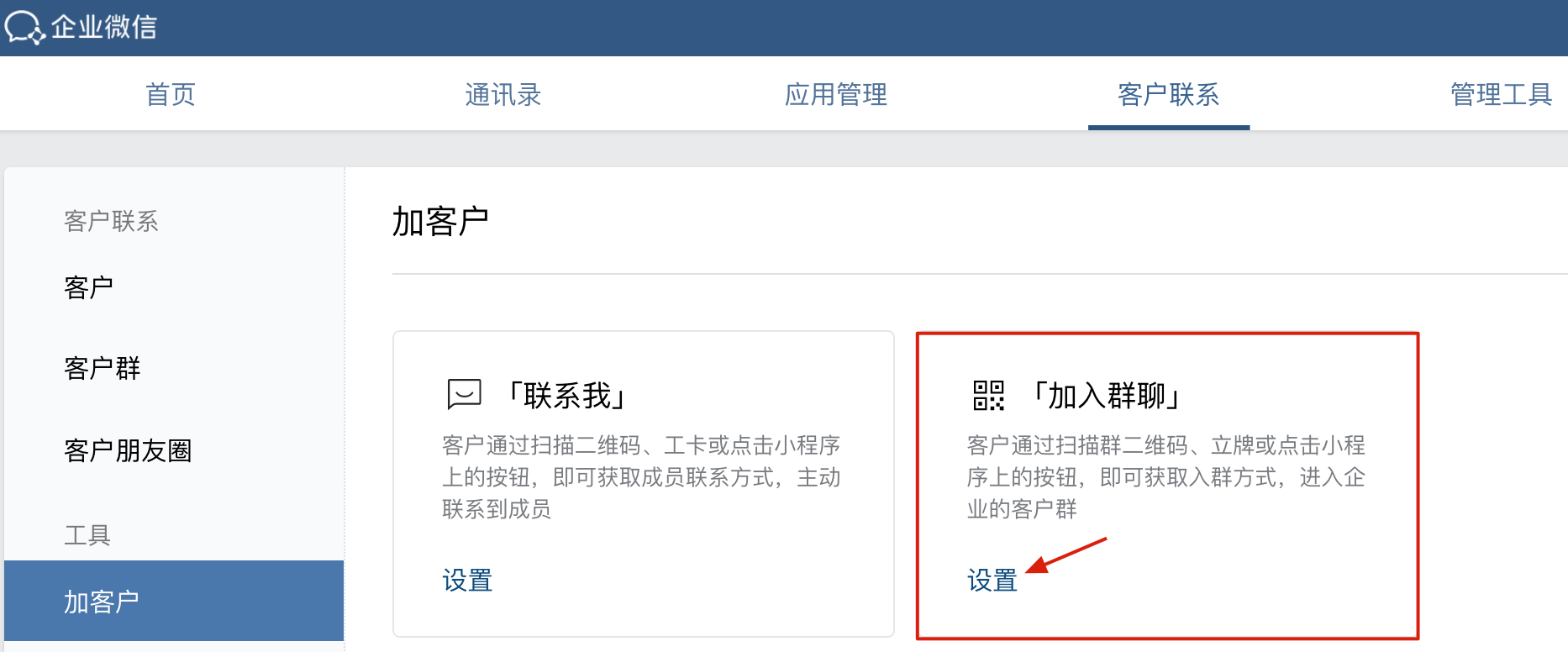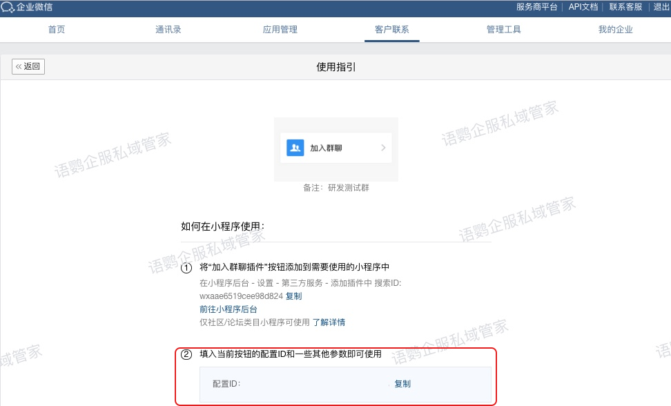 其中配置ID需要在【企业微信管理后台-客户联系-加客户-加入群聊】页面设置
