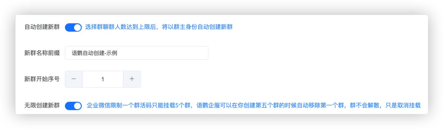想要无限建群,企业可以使用语鹦企服【进群活码】功能,一样的永久有效,而且还能突破最多绑定5个群聊的限制,语鹦企服群活码会自动解除已满200人群聊的关联,并且可以无上限创建新的群聊。真正实现群活码永久有效,并且进群人数无上限。