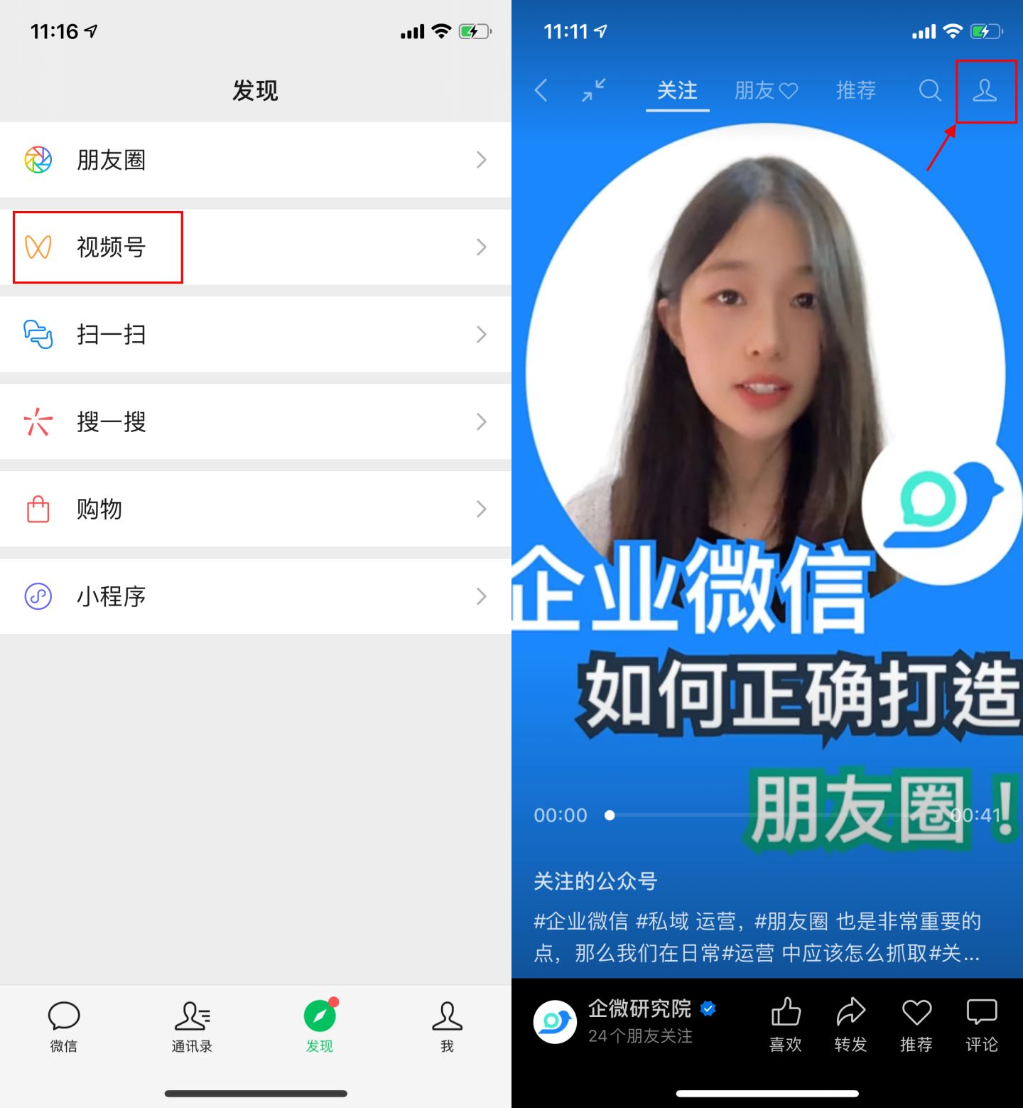 ①打开微信,点击发现–视频号–右上方小人像进入视频号个人主页。