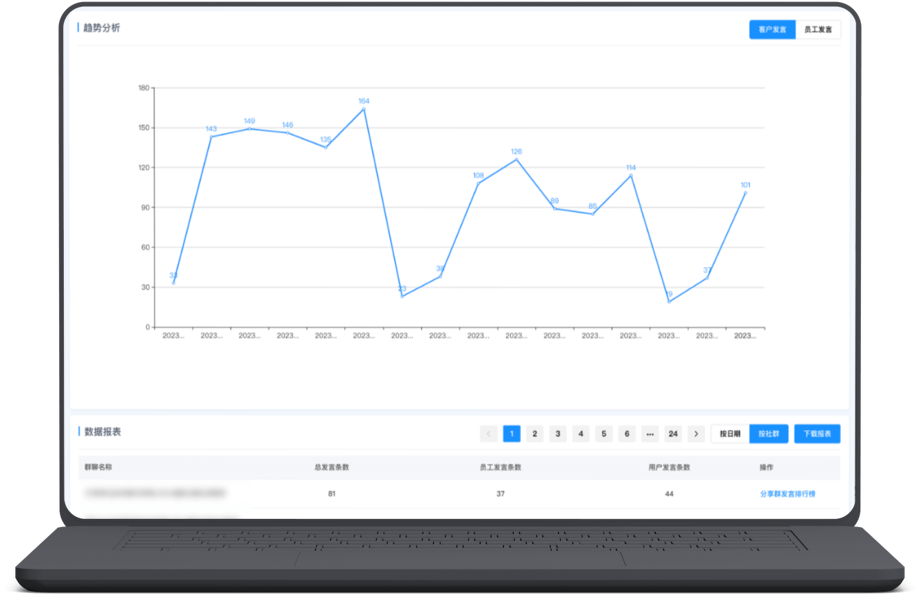 团队复盘经常会分享业绩排名前列的案例,给其他成员学习,聊天内容存档能很好的还原整个销售场景,让销管带动团队,提升团队整体销售水平和业绩。