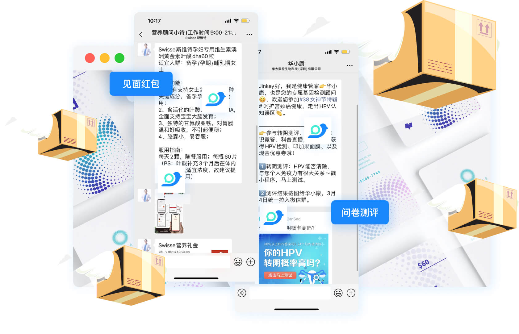 包裹卡可以精准引流付费客户,利用见面红包、问卷、售后服务等多种方式引导客户添加企业微信,留存私域。
